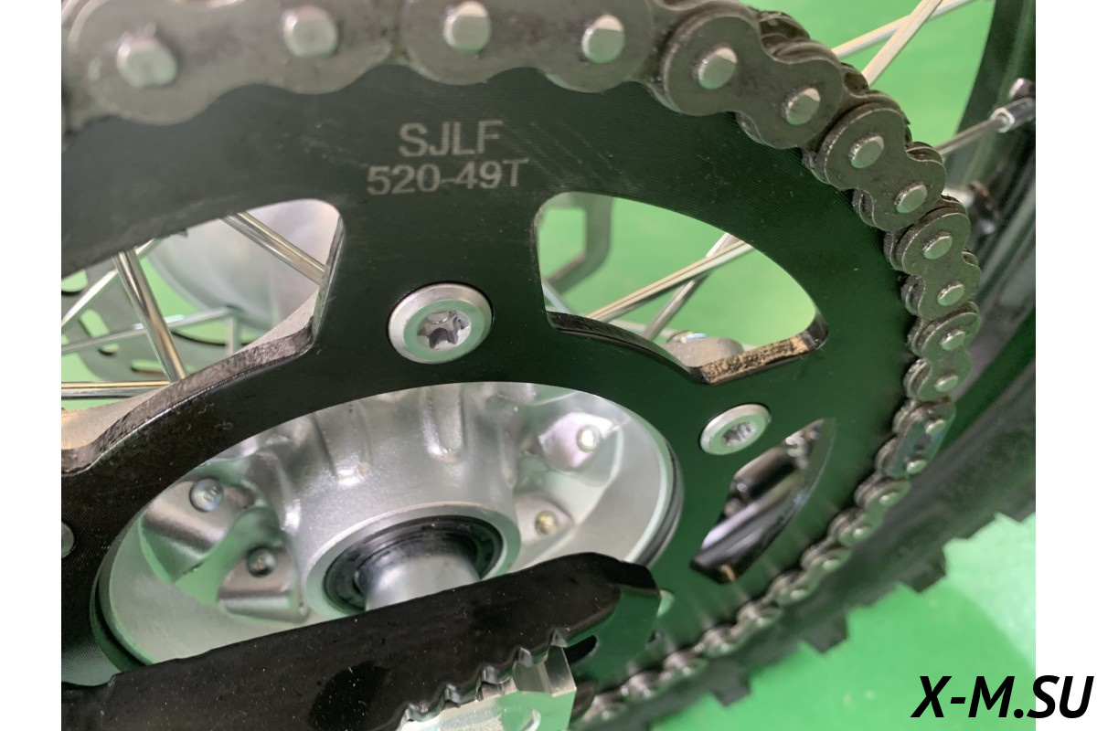 Пластик используется KTM2020 – очень прочный и распространенный, что делает его максимально возможным к обслуживанию. Руль IGP TwinWall 22/28 алюминиевый на всех моделях! Силиконовые грипсы Nibbi Racing – левая на замке, правая на короткоходной ручке газа Nibbi. Рычаги тормоза/сцепления – неломайки, из фрезерованного алюминия от CNC. Влагозащищенные кнопки старт/стоп на руле. Складной рычаг переключения передач, фрезерованный, из алюминия, от бренда PRO CAKEN. Лапка тормоза так же фрезерованная, алюминиевая. Самая легкая и прочная приводная цепь RK520MXZ уже установлена!